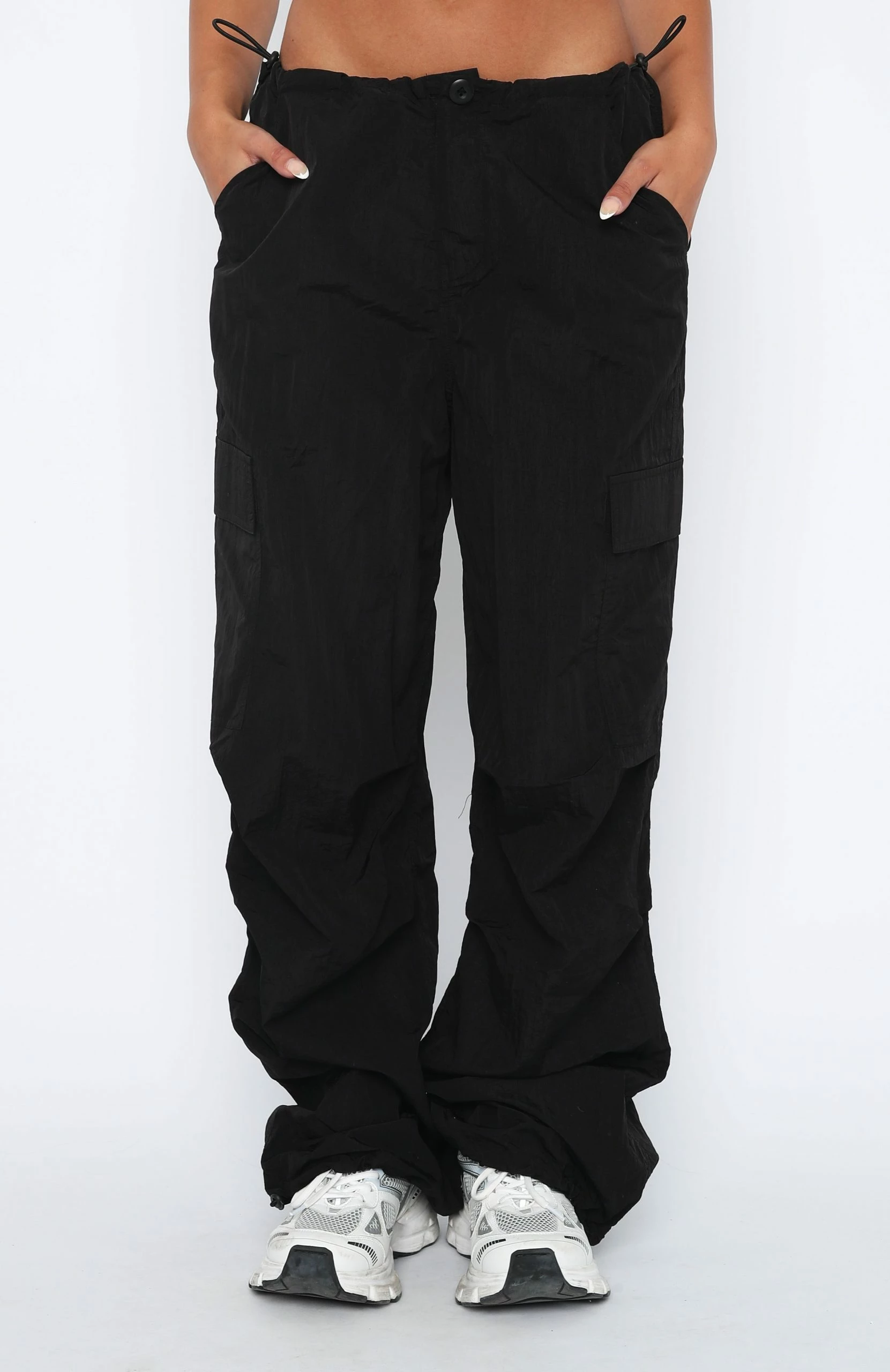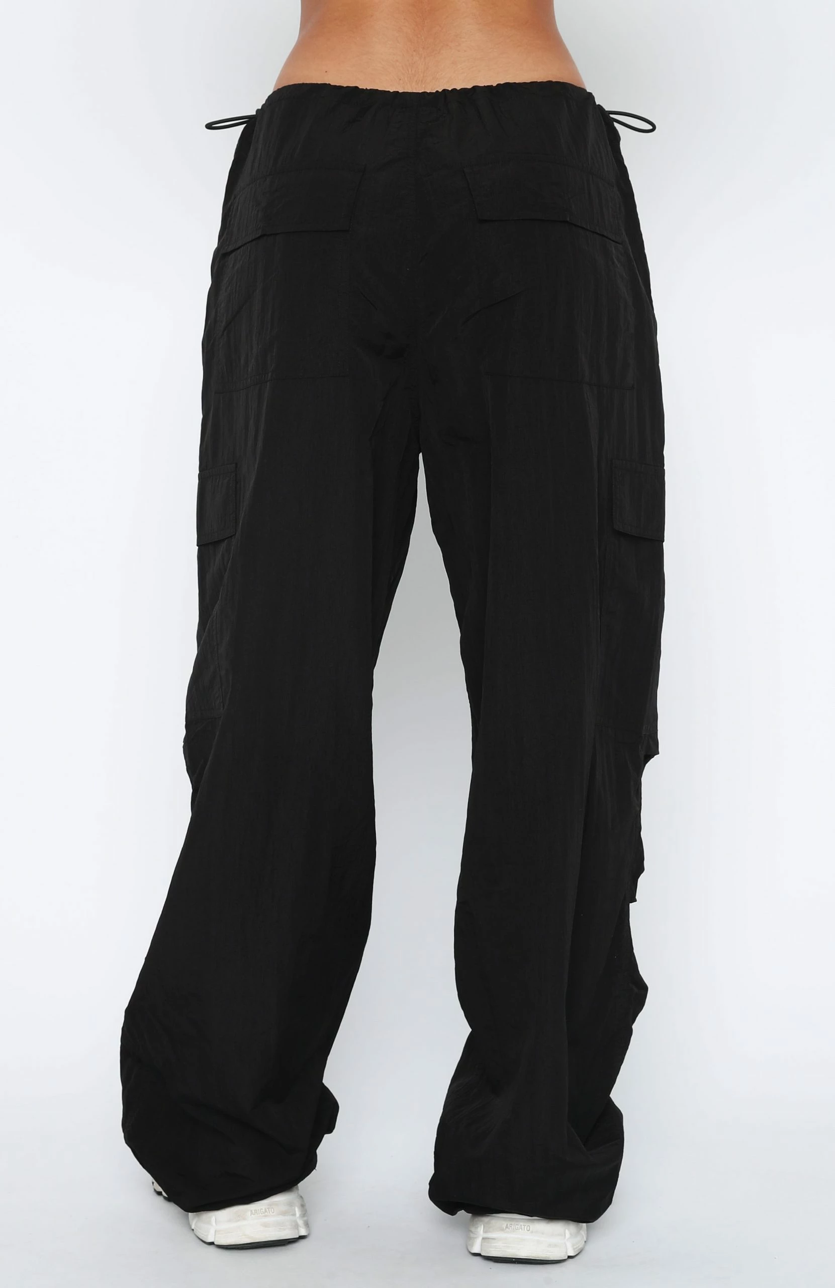 Parachute pants are our current obsession and we are living in the Be The Moment Cargo Pants in Black. Featuring a parachute pant design and a wide leg fit, button closure, side and cuff drawstring with toggle, back and side pocket design and lightweight fabric. Pair these parachute pants with a long sleeve top and sneakers for a super chic look.