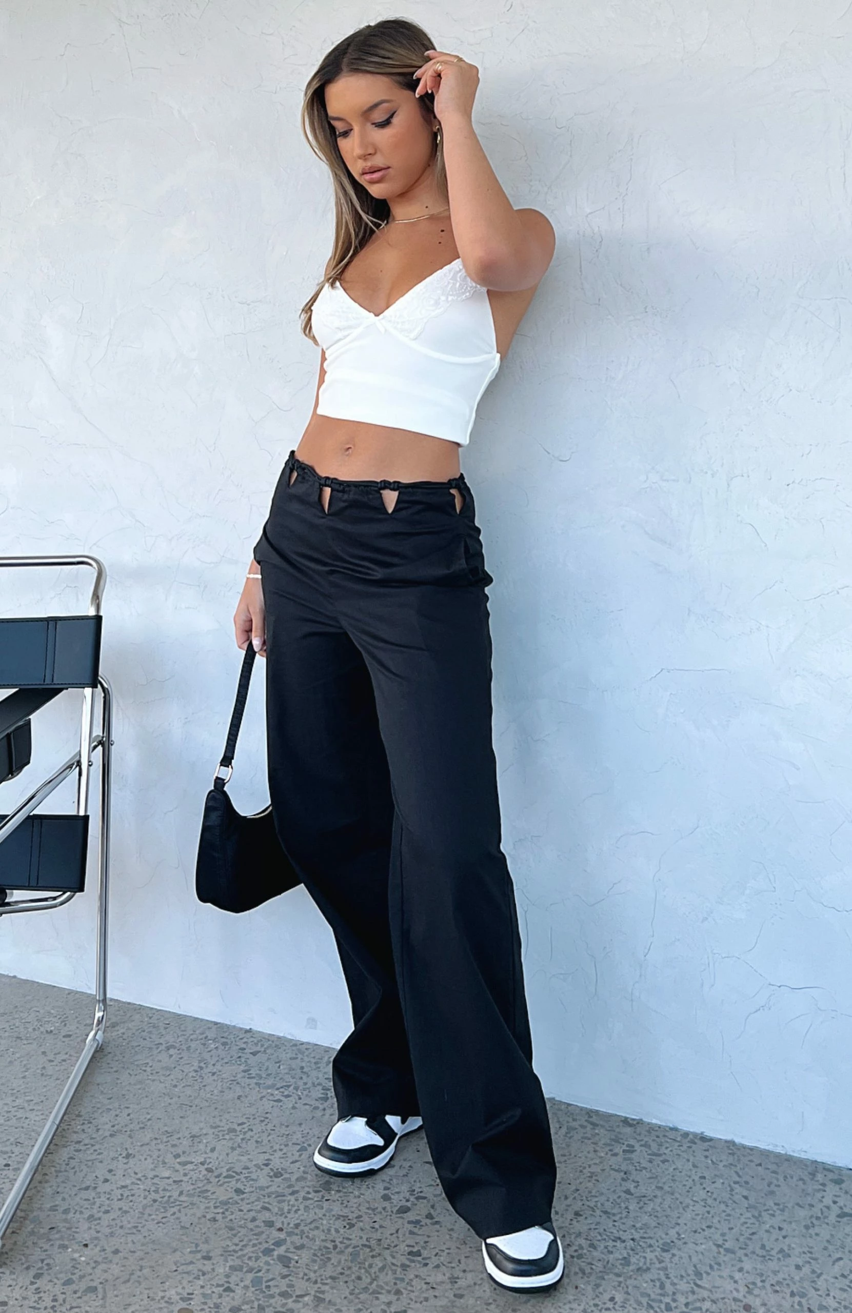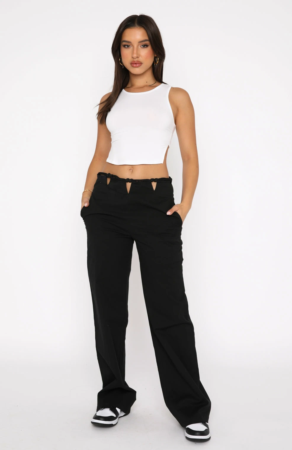 Channel everyday street style in the Like What You See Pants in Black. Featuring rope detail at waist, side pockets, wide leg straight fit, invisible zipper centre back and lined fabric. Pair with a cute crop top and sneakers for a super chic look.