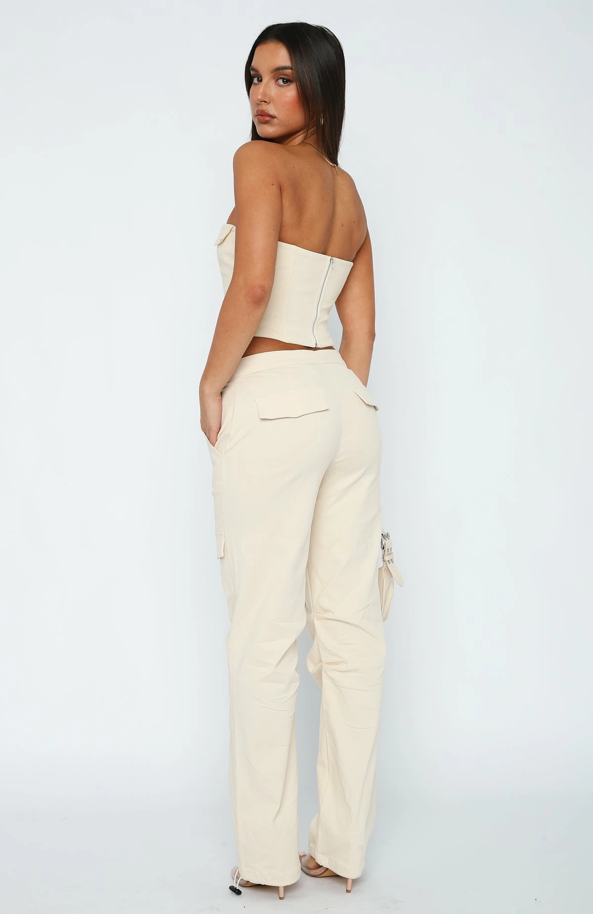 Grab yourself this Living Easy Pants Cream as the styling staple for the new season. Featuring a cargo pant design and a wide leg fit, button and zipper closure, drawstring with toggle at the bottom, back and side pocket design and lightweight fabric. Style with your favourite sneakers, and a mini bag for a ‘fit worthy of all your weekend plans.