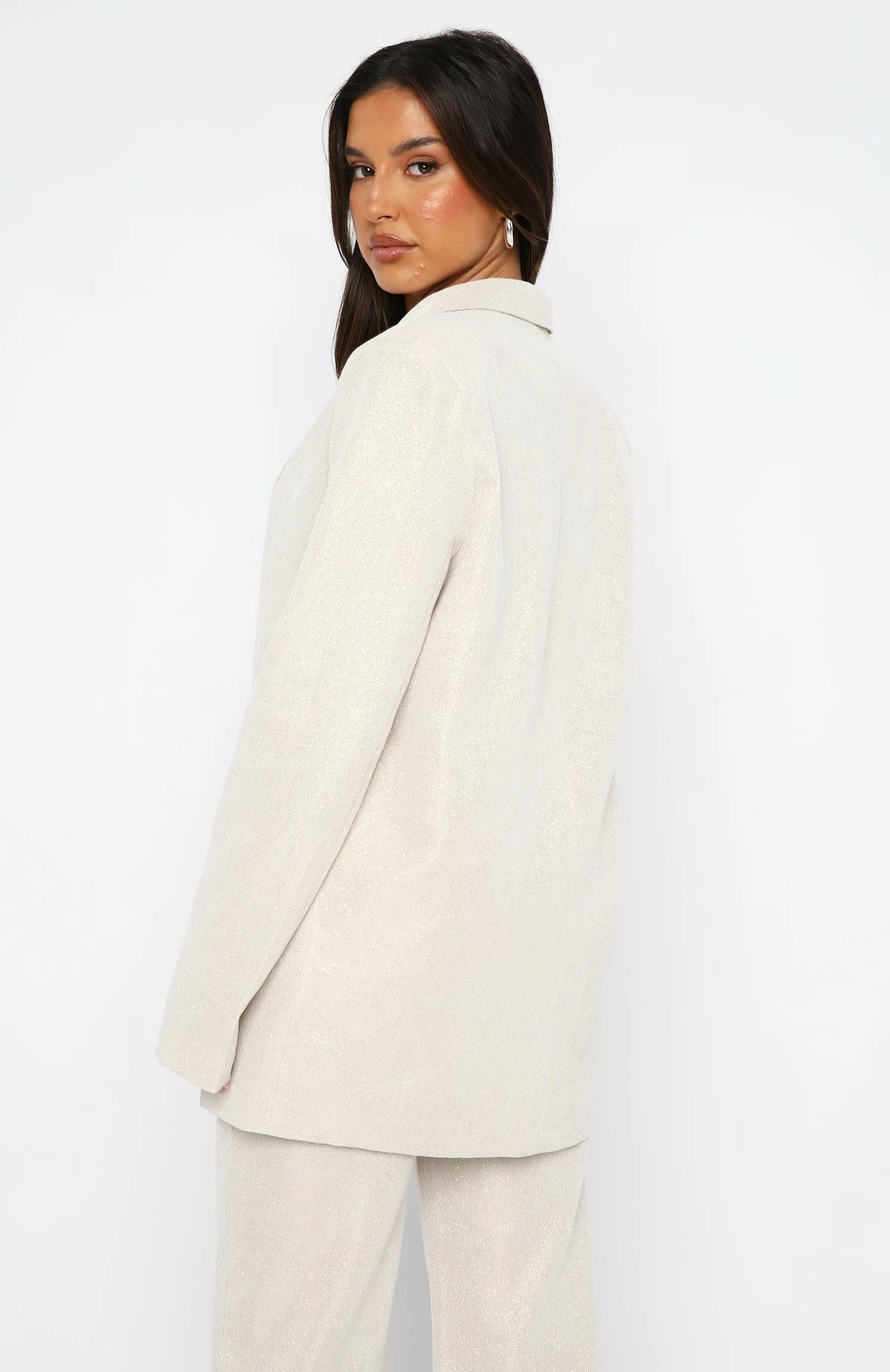 Don’t miss out on this must-have piece for your weekend staples collection. This blazer has an oversized, loose fit with button fastening front, front pockets, lined thick fabric and a glistening fabric to give you a fabulous look. Wear with clear strap heels and the Bring The Sparkle Pants for a look we’re obsessing over.