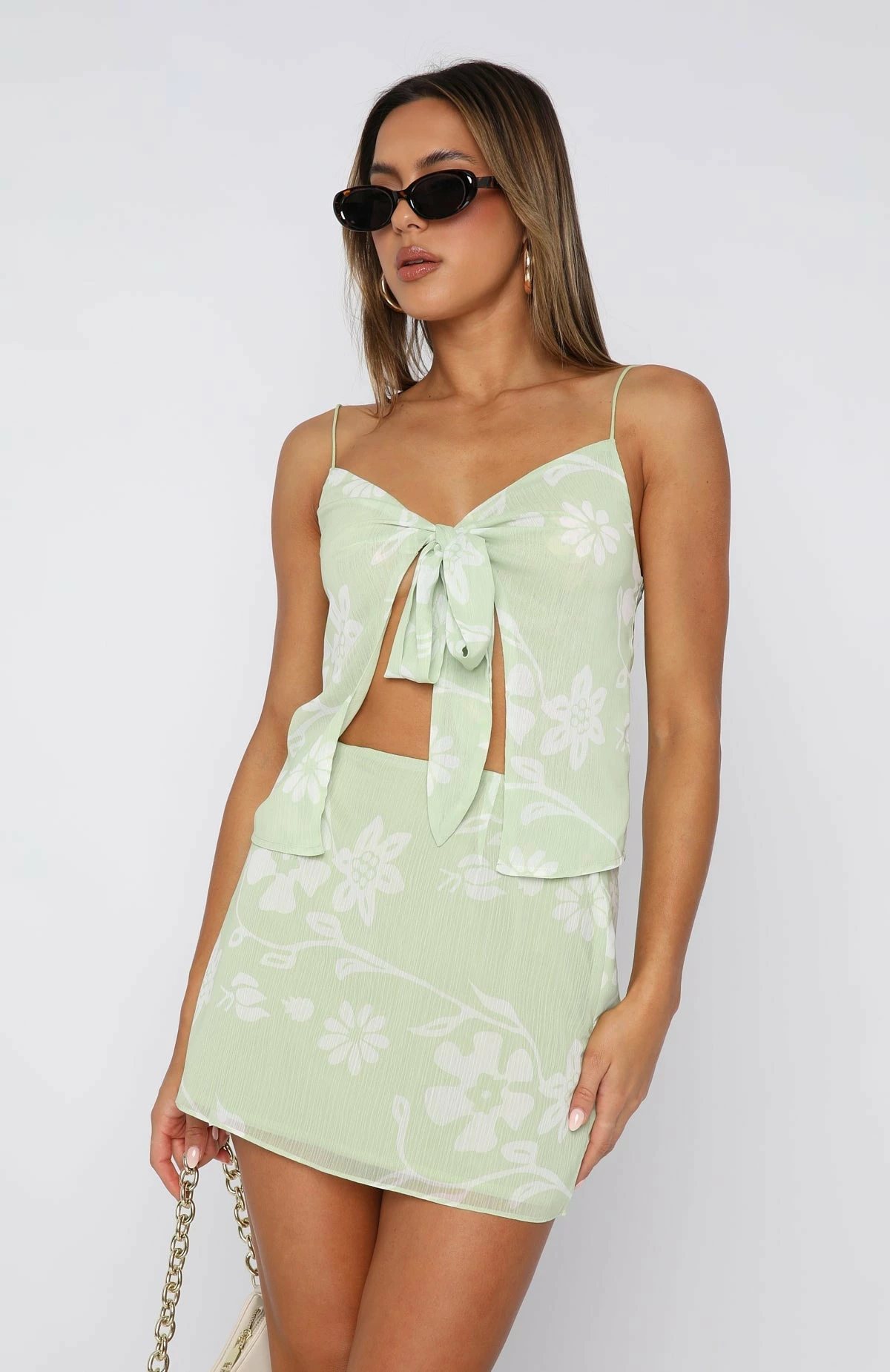 Take on a warm summers day in the Make Your Day Mini Skirt Light Green Spring Blossom. This skirt is a high waisted and loose fitted mini skirt with a hidden side zipper with hook & eye, semi sheer, lined and light weight fabric. Pair with the matching Make Your Day Cami and complete the look with a comfy slide and tote bag. We’re in love!