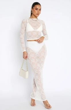Under My Spell Lace Maxi Skirt White
