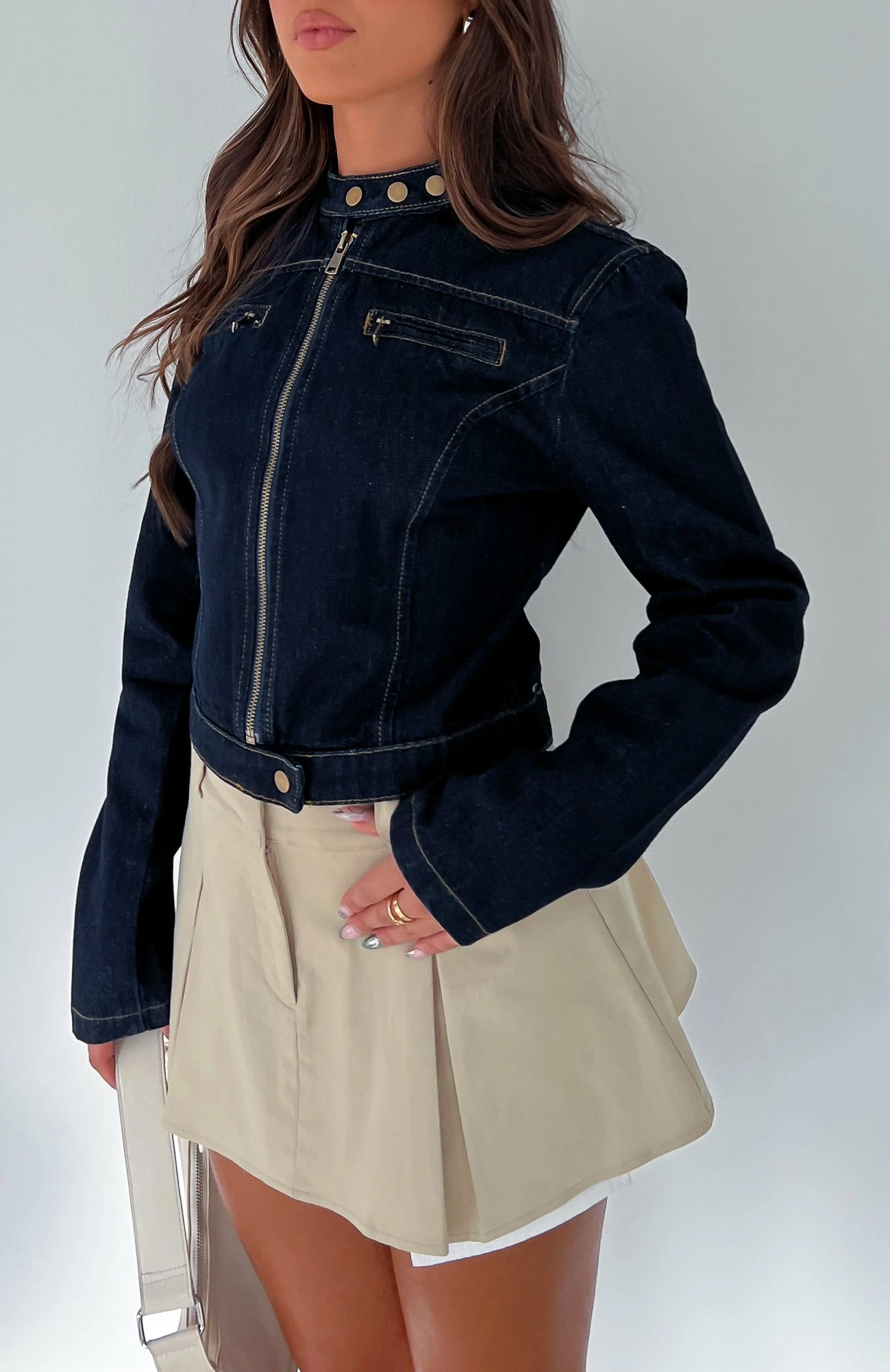 An effortless and on-trend essential to add to your wardrobe. The Wherever We Go Denim Jacket Light Wash features a high neckline with button closure, front pockets and zipper closure. Stand out and style it with the Take My Picture Maxi Skirt for a gorgeous look for girls night!